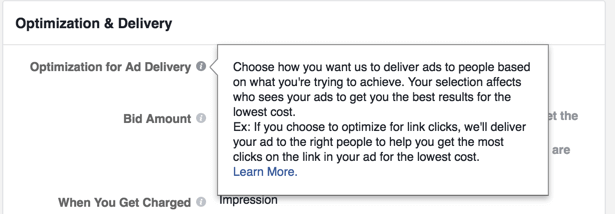 Naturally you want to make sure you’re giving Facebook the best chance to optimize your ad sets for you. To do that, you need to get your optimization settings right.