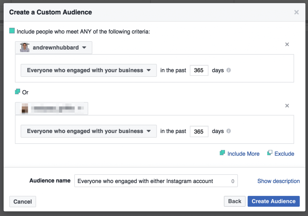 You can keep adding or excluding segments of your audiences as well. You can even have multiple inclusions and exclusions across multiple Instagram accounts. It really does give you a lot of control.