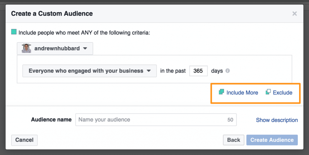 Selecting this will let you add more people to your audience so you’re not limited people who performed one type of action.